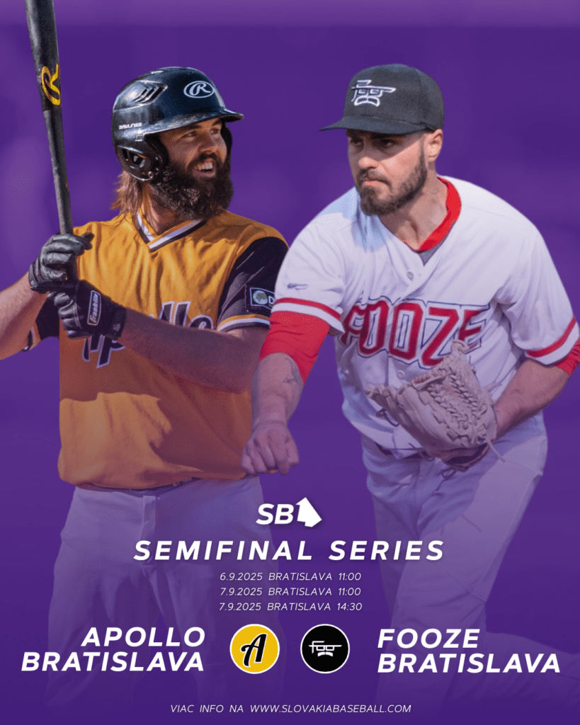 Obe semifinálové dvojice odohrajú prvý duel v sobotu, v nedeľu sa rozhodne o postupujúcich celkoch. Nenechajte si ujsť kvalitný baseball už tento víkend – na ihriskách v Trnave a Bratislave!