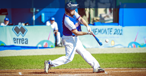 V našom poslednom vystúpení na majstrovstvách Európy v elitnej A kategórii sme nastúpili proti výberu Francúzska v zápase o konečné 15. a 16. miesto. V tomto zápase už obom tímom o nič nešlo, keďže predošlé zápasy oboch výberov rozhodli o zostupe do európskej B kategórie. To ale neznamenalo, že si nechceme po tesných a trošku trpkých prehrách znova užiť dobrý baseballový zápas. Na kopci sa za nás predstavil Michal Puškár, ale po miernych problémoch s kontrolou najmä pri technických nadhodoch sme dostali prvý bod hneď v prvej zmene. Naša odpoveď však na seba nenechala dlho čakať a vďaka trom úspešným odpalom sa nám podarilo hneď dvakrát skórovať. Do zápasu vstúpil v druhej zmene náš nový nadhadzovač Martin Gieci, ktorý podal excelentný výkon a súperovi za ďalších 6 zmien povolil iba 2 body. Slovensku sa podarilo skórovať po jednom bode v ešte v druhej a šiestej zmene a do dohrávky deviatej zmeny sme nastupovali za nerozhodného stavu 4 : 4. Mali sme veľkú príležitosť mať obsadenú prvú a tretiu métu pri jednom oute, ale po chybe v behu po métach sme túto výhodu stratili a nepodarilo sa nám nakoniec v deviatej zmene skórovať. Zápas pokračoval extra zmenami, kde sa podľa pravidiel začína s obsadenou prvou a druhou métou. V desiatej zmene sme si s Francúzmi vymenili zhodne po jednom bode. V jedenástej zmene dostávame od Francúzov opäť jeden bod, na ktorý sme však bohužiaľ nedokázali odpovedať a po oute na domácej méte bežca Michala Nogu sa lúčime s turnajom s tretou tesnou prehrou v rade 6 : 5 na poslednom mieste. Na záver by sme len spomenuli, že slovenská reprezentácia bojovala zo všetkých síl proti často profesionálnym hráčom a tomu najkvalitnejšiemu, čo v Európe momentálne je. Našim úspechom je stále už samotné prebojovanie sa do tejto elitnej kategórie a dúfame, že o rok sa nám znova podarí do tejto kategórie postúpiť. Team 1 2 3 4 5 6 7 8 9 10 11 R H E LOB FRA 1 1 1 0 0 0 0 1 0 1 1 6 8 5 14 SVK 2 1 0 0 0 1 0 0 0 1 0 5 10 2 19 Výsledky a štatistiky zo zápasu