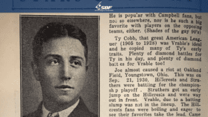 Z HISTÓRIE SLOVENSKEJ BASEBALLOVEJ LIGY V USA: ČASŤ TRETIA Slovenská baseballová liga, založená v roku 1920 v Spojených štátoch, bola organizáciou združujúcou družstvá Slovákov na novom kontinente. Ako je evidentné zo zdrojov, táto liga bola organizačne na naozaj vysokej úrovni. Zapisovatelia a rozhodcovia, manažéri klubov, aj vedenie organizácie brali svoju prácu naozaj seriózne a so zápalom pre šport. Dnes si priblížime jednu z legiend tejto ligy, ktorá sa stala ikonou súťaže pre svoj temperament, tvrdú prácu a prínos pre šport. (Úryvok z ročenky SBL 1934) Zadnopoliar tímu Campbell, hádže pravou rukou, páli sprava. Mladík, ktorý je súčasťou Slovenskej baseballovej ligy od roku 1928: Joe Vrable! Tento výnimočný športovec z Campbellu už spôsobil nejeden rozruch. Je považovaný za jedného z najviac unikátnych hráčov, aký kedy vstúpil na ihriská ligy. Prirovnávaný k legendám ako Art Shires a Ty Cobb. Prekonal dokonca aj rekordy, o ktoré sa pričinil temperamentný manažér tímu Struthers Mike Olenick pred 15-timi rokmi. Odchovanec Hillcrests tu pôsobil v rokoch 1926 až 1930. Okrem baseballu je Joe aj šikovným hráčom basketbalu, v Hillcrests hral rozohrávača v legendárnom tíme, ktorý zaznamenal 20 výhier v rade v A-divízii. V basketbalovej komunite hral pod prezývkou „Rusty Rider“ a je známy ako bývala súčasť klubu Campbell Merchants, ktorý vyhral medzištátny titul majstra v sezónach 1927 a 1928. V Slovenskej baseballovej lige sa jedná o hráča, ktorý pravidelne zaznamenáva najviac ukradnutých miet. Jeho zbraňou je obslajdovanie miet pri kradnutí, čo ešte viac pomáha jeho extrémnej rýchlosti medzi métami. V obrane by aj sám pokryl hektáre outfieldu. Je populárny medzi fanúšikmi Campbellu Slovaks, no plné zuby ho majú pochopiteľne snáď všetci súperi. Joeho veľkým vzorom je legenda americkej ligy Ty Cobb (ktorý pôsobil v americkej lige v rokoch 1905 až 1928), čo je na jeho štýle naozaj viditeľné. TEMPERAMENTNÝ JOE VRABLE Joe takmer spôsobil občianske nepokoje na Oakland field v Ohiu. Písal sa 21. september 1930, keď Hillcrests (vtedy tu ešte pôsobil Joe) a Struthers bojovali o miestenku vo vyraďovacej časti. Struthers si dokázali zo začiatku vybojovať sľubný náskok, tímu Hillcrests chýbal v pálkarskom line-upe mladý Joe, čo spôsobovalo v hľadisku veľký hnev fanúšikov. Hillcrests nevedeli dobehnúť štvorbodový náskok svojho súpera. Métu zdarma dostal Ernie Palus, následne úspešným odpalom do pravého zadného poľa posunul tohto bežca Greene. Joe Vrable, nakoľko nebol v zostave, coachoval na tretej méte. Joe (pravdepodobne uvažujúc svoju vlastnú rýchlosť) poslal pomalšieho Palusa na tretiu métu, kde však rozhodca vyhlásil out. Hádky s rozhodcami situácii vôbec nepomohli, rozhodnutie ostalo platné, a fanúšikovia neboli vôbec nadšení. Nahlas vyčítali Joemu, že mal bežca nechať na druhej méte a neriskovať. Hillcrests nakoniec prehrali o jeden bod a hneď z hľadiska sa rýchlo nasmeroval na Joeho, na ktorého už smerovali nepekné slová fanúšikov. Ten ich odbil hlasným „sklapnite!“, čo nemalo vôbec pozitívnu odozvu. Joe sa dostal do priamej fyzickej roztržky s fanúšikmi – muži hádzali päsťe, ženy kričali, policajti nabehli s obuškami a snažili sa nastoliť poriadok. Až množstvo policajtov a slušných občanov dokázalo situáciu ukončiť, no nič to nemenilo na tom, že Joeho tím prehral zápas aj možnosť získať titul. Toto bola nakoniec rozlúčka s celým klubom, nakoľko ten sa počas zimy rozpadol. DOBEH ZA KAŽDÚ CENU Z pôsobenia Joeho v tíme Campbell Slovaks sa mnohí pamätajú aj na zápas proti Holy Name z 19. júna 1932. Mužstvá v zápase bojovali o prvú priečku v polovici sezóny a proti Joemu sa na nadhod postavil Buchel Olenick vo výbornej forme. Joe Vrable sa dostal na métu úspešným odpalom, následne ukradol aj druhú métu. S druhou métou sa však ani zďaleka neuspokojil a pri nasledujúcom odpale do zeme od Andyho Greena sa Joe rozbehol na tretiu métu. Pri slajdovaní a náraze do obrancu Joe vybil dych protihráčovi, lopta sa odkotúľala smerom na lavičku a rýchle nohy bežca zabezpečili dobeh na domácu métu. Karikatúra zobrazujúca incident v ročenke z roku 1934 IKONA SLOVENSKEJ LIGY Joe Vrable bol vždy temperamentným hráčom. V roku 1933, keď ho manažér vyradil zo zostavy, sa Joe urazil a požadoval prestup do iného tímu. Počas svojej kariéry sa dostal do mnohých ďalších šarvátok, mnohé z nich aj fyzických. Jeho horúca krv sa ale vždy prejavovala aj v pozitívnom smere. Bol to tvrdo trénujúci a hru milujúci hráč, ktorý si neustále zlepšoval svoje baseballové vedomosti a zručnosti, americkú ligu sledoval a študoval ako fanatik. Jedná sa o legendu Slovenskej baseballovej ligy v USA a bude navždy jedným z najviac pamätných hráčov tejto unikátnej baseballovej súťaže amerických Slovákov. Séria článkov „Z histórie slovenskej baseballovej ligy v USA“ vychádza v spolupráci s Kasigardou – Múzeom vysťahovalectva z územia Slovenska do Severnej Ameriky. Múzeum sa nachádza v Pavlovciach nad Uhom v časti Tahyňa. Špeciálna vďaka patrí Doc. PhDr. Martinovi Javorovi, PhD., ktorý múzeum založil a dodnes rozširuje. Spracoval: Max Martin